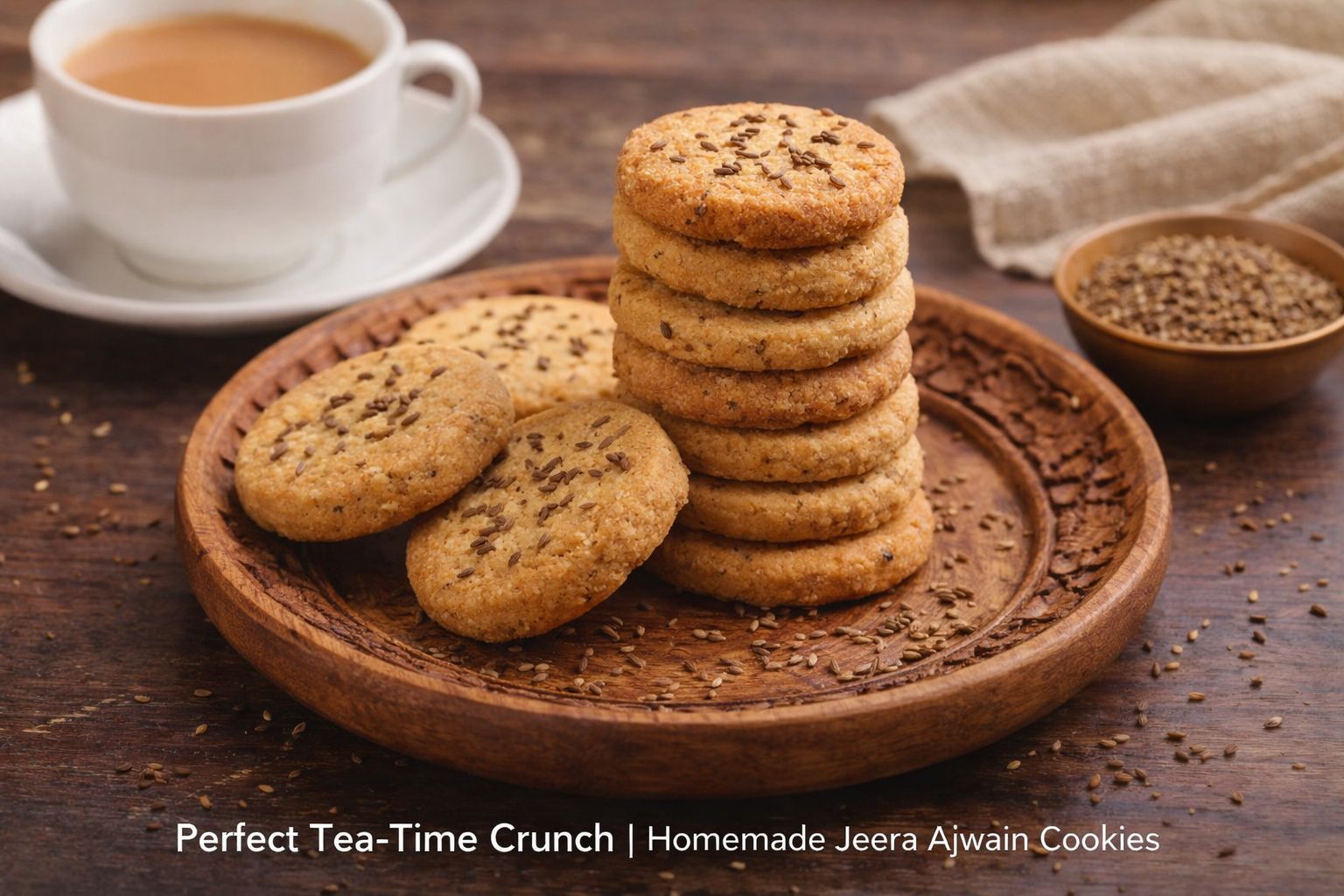 Enjoy the perfect tea-time snack with our homemade Jeera Ajwain Cookies, freshly baked in our kitchen with love and care.